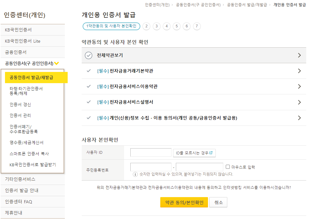4️⃣ 개인용 인증서 발급 절차에 따라 발급을 받으시면 됩니다.