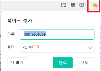 6. 북마크(즐겨찾기)에 유튜브가 추가됩니다.