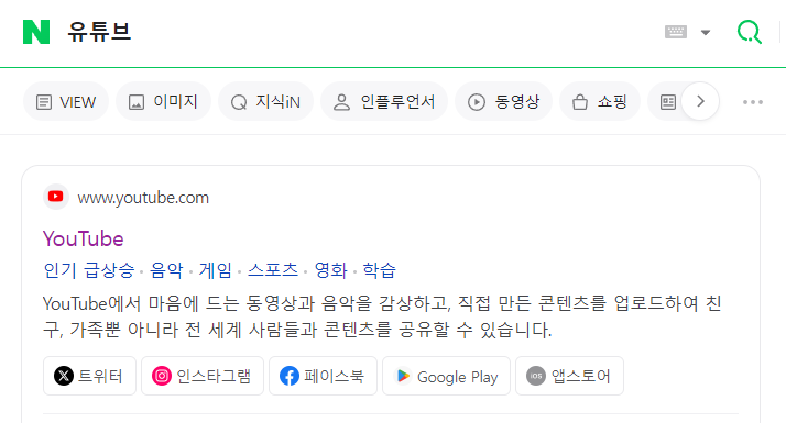 4. 유튜브를 클릭합니다.