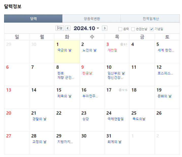 10월 3일(개천절)