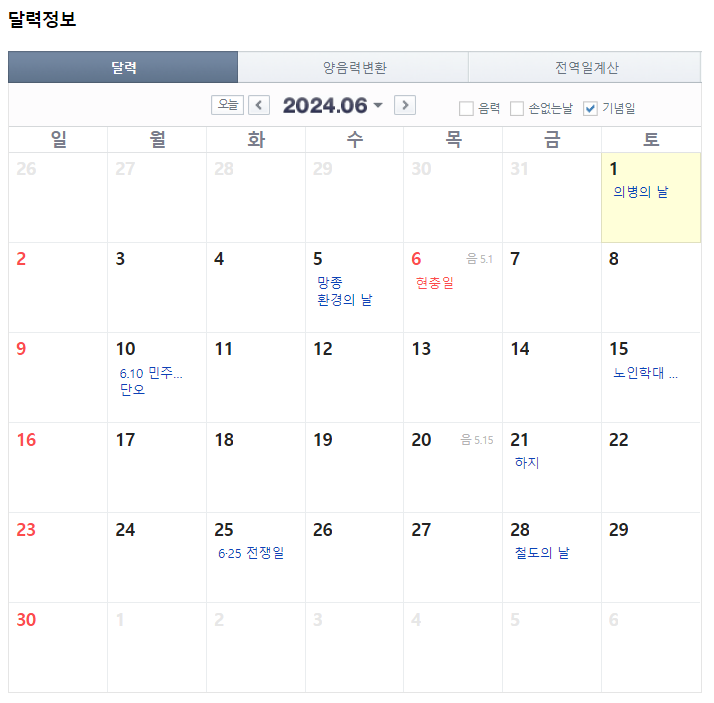 6월 6일(목) 현충일