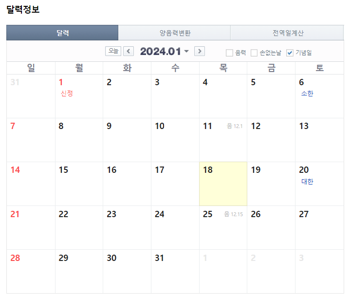 1월에는 1월 1일이 신정으로 공휴일이었습니다.