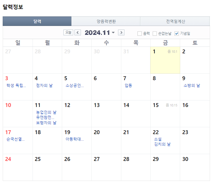 11월에는 7월과 동일하게 휴뮤일이 없습니다. 연차를 사용해야 하는 달입니다.