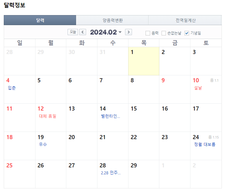 2024년 휴무일과 대체 휴일에 대해 소개해드렸습니다.