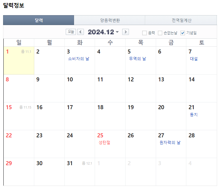 12월에는 25일(성탄절)이 있습니다.